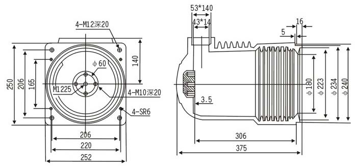 觸頭盒采用環(huán)氧樹(shù)脂結(jié)構(gòu),用于各種手車(chē)式開(kāi)關(guān)柜,起絕緣隔離和聯(lián)接過(guò)渡作用。 安裝中心距離為250mm,適用額定電壓10KV,電流2500A~3150A。觸頭盒在額定電流下,長(zhǎng)期工作下出線(xiàn)端部溫升不超過(guò)65℃。