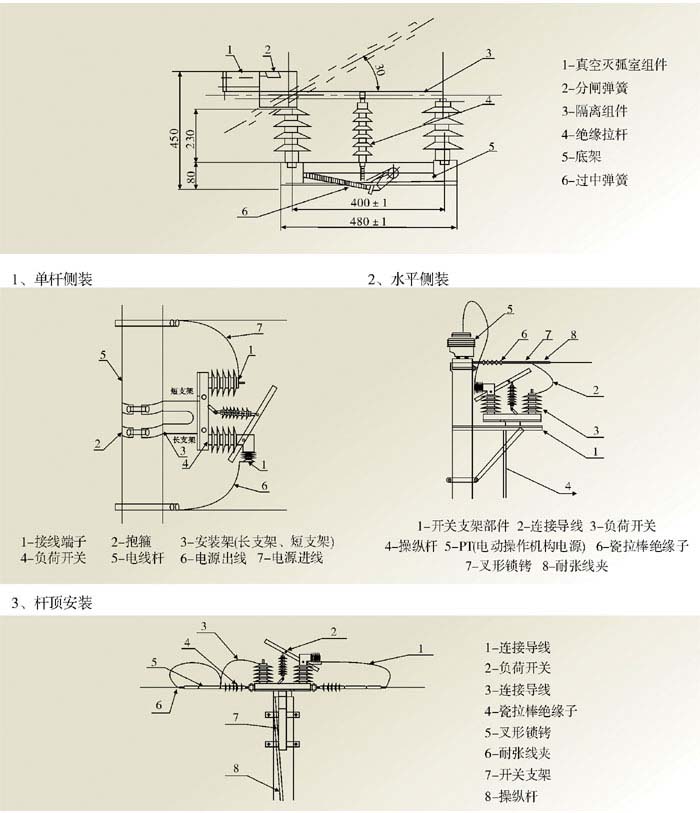 負(fù)荷開(kāi)關(guān)是由隔離刀和真空滅弧室這兩大組件組成,隔離刀承擔(dān)了合閘和分閘時(shí)絕緣作用,真空滅弧室承擔(dān)熄滅電弧的作用。