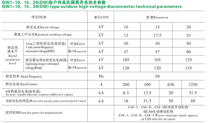 常用型號:GW1-10/200、GW1-10/400、GW1-10/630、GW1-10/1250A