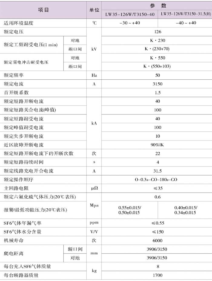 斷路器符合GB1984-2003《高壓交流斷路器》和IEC62271-100-2001《高壓交流斷路器》及QJ/RG.30.03.54-1999《LW36-126自能式斷路器技術(shù)條件》的要求。斷路器以SF6氣體為絕緣和滅弧介質(zhì),采用自能式滅弧原理,配用新型彈簧操動(dòng)機(jī)構(gòu),具有開斷能力強(qiáng),操作功小,可靠性高的特點(diǎn)。